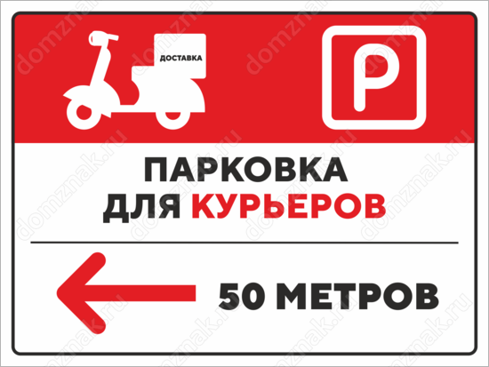 Табличка «Парковка для курьеров 50 метров»
